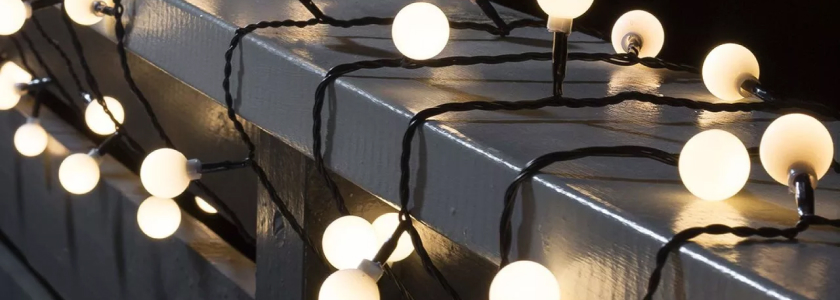 гирлянда с гибким проводом или шиной, на которой расположены патроны под лампы накаливания (камерный, уютный внешний вид)